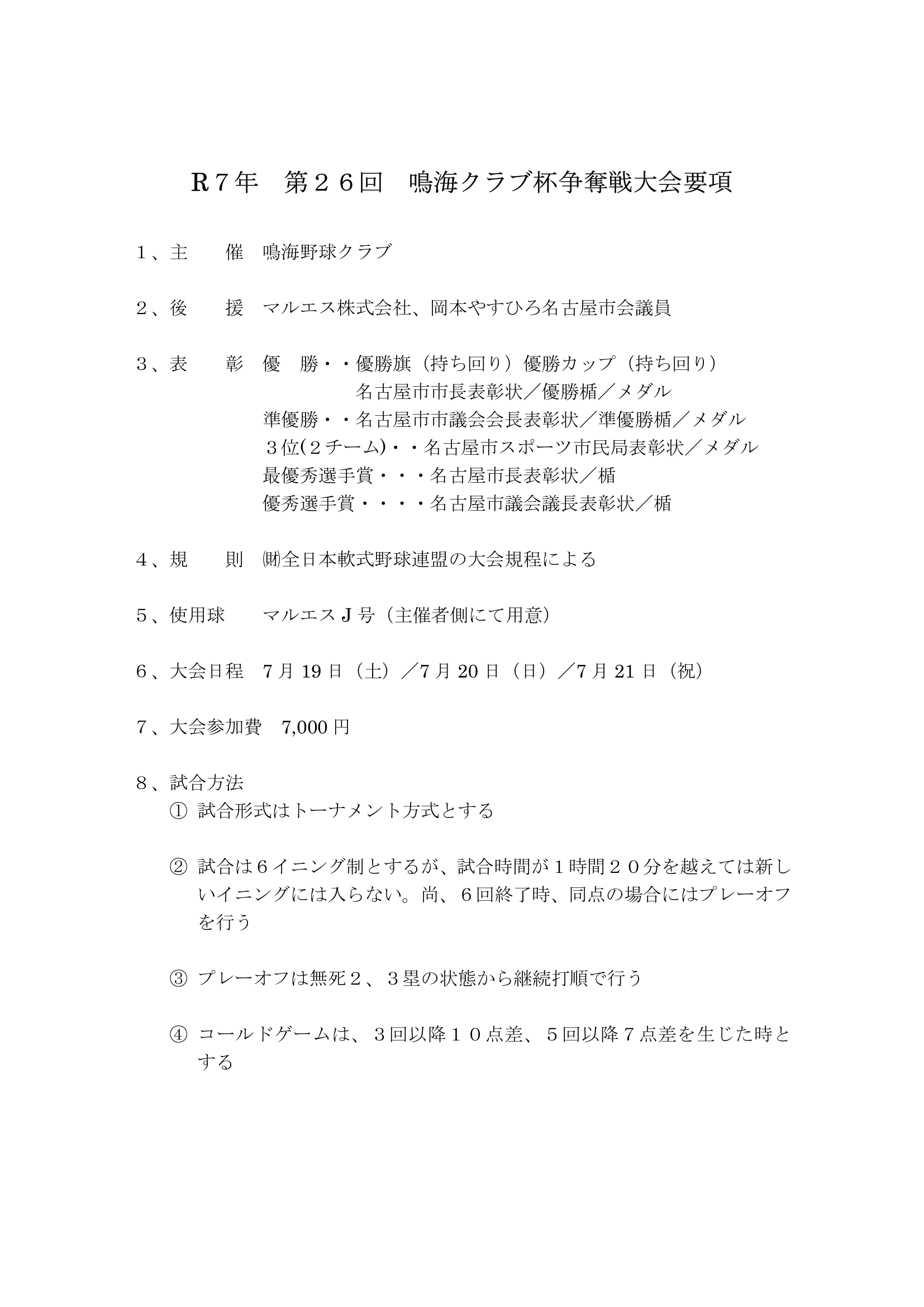第26回 マルエス・鳴海クラブ杯 組み合わせ