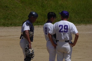| 気合十分です! | エースの制球が冴える! | 要所で監督の指示を確認! |