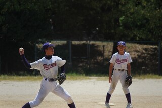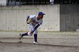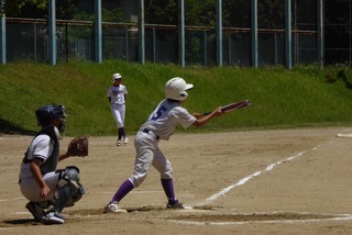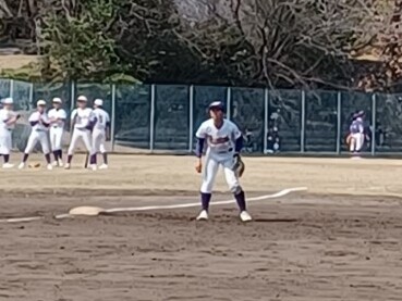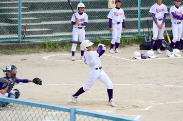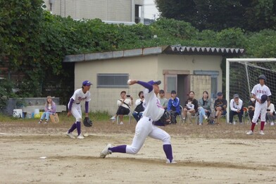 | 広いグラウンドでした | 合同チームで臨みます! | 強い下半身で投球! | しっかりとフルスイング! |